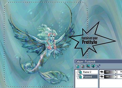 Moi, j'ai ajouté des bulles derrière la sirène... Voici comment j'ai procédé: Faire une sélection rectangulaire sur votre fond, progressivité à 17 comme ceci: Effets Artistiques - Bulles: