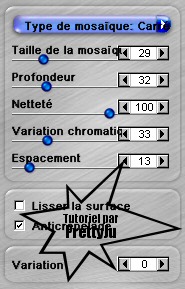 Alors, allons-y!! On commence par ouvrir notre tube, puis fenêtre - dupliquer. Fermer l'original Image - Redimentionner 1024 x 300. Calques - fusionner tout (applatir) Effets - effet d'image - mosaïque sans jointures avec les configurations suivantes: Réglage - flou gaussien à 15 Effet- Modules Externes - AutoFX Software - DreamSuite Bonus - mosaic Pour éviter la vilaine jointure, on fait => Effets - effet d'image - mosaïque sans jointures avec les configurations suivantes: Ouvrez votre tube et allez le coller