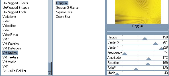 Alors, allons-y!! On commence par ouvrir une image de notre choix. Image redimensinner 150 x 150 Effets - effet d'image - mosaïque sans jointures avec les configurations suivantes: Faire un flou gaussien à 15. Ensuite, effet VM Stylize - Raygun avec les configuration suivantes: Puis Effets - Modules externes - simple - 4 way average Puis Effets - Modules externes - simple - Blintz Voila, la tuile est terminée!